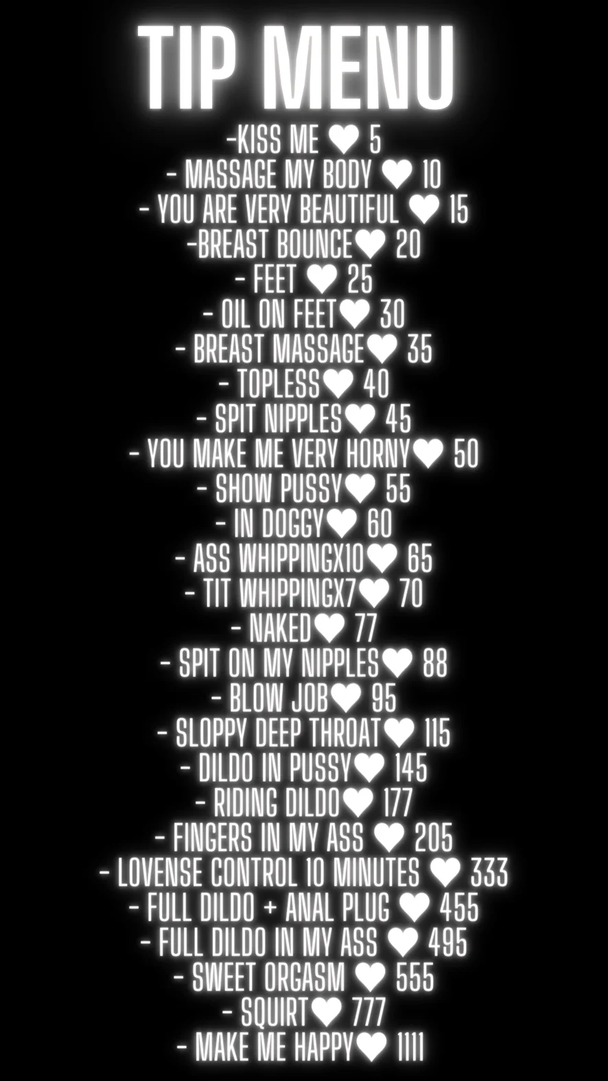 Doggy Style, Spanking, Erotic Dance, Twerk, Fingering, Striptease, Foot Fetish, Blowjob, Massage, Orgasm, Oil Show, Dildo or Vibrator, Dirty Talk, Ejaculation, Deepthroat, Anal Toys, Sex Toys, Nipple Toys, Masturbation, Gagging